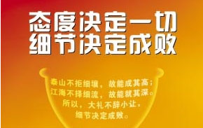 ◎ 勤儉節(jié)約精神:勤儉節(jié)約是公司的立足之本,要珍惜公司的每一分錢(qián),不鋪張浪費(fèi),不大手大腳。 ◎ 質(zhì)量至上精神:質(zhì)量是公司的發(fā)展之基,要狠抓產(chǎn)品質(zhì)量,強(qiáng)化生產(chǎn)工序檢測(cè)和管理,實(shí)行產(chǎn)品質(zhì)量標(biāo)準(zhǔn)化,以質(zhì)量鑄造品牌,以服務(wù)強(qiáng)化品牌。 |